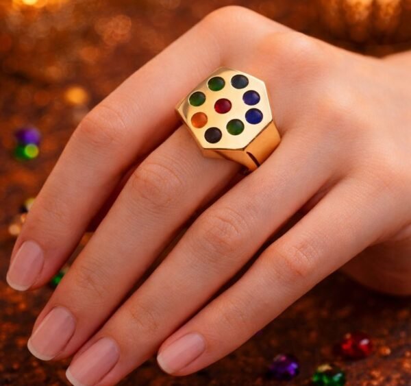 (नवरत्न अष्टधातु अंगूठी शुक्ल पक्ष में रविवार की सुबह सूर्योदय के बाद धारण करना सबसे शुभ माना जाता है।) - Before wearing, purify the ring by dipping it in raw milk, Gangajal, or clean water for a few minutes.