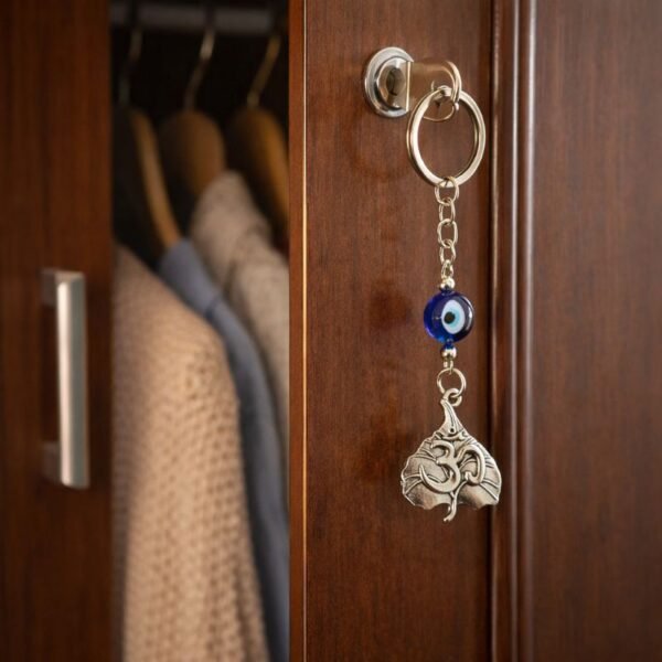 Om Leaf Evil Eye Keychain – Shubh Nazar Protection Keyring with Spiritual Vibes