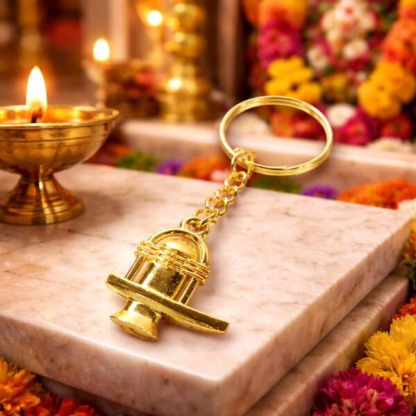 Shivling Golden Metal Keychain – Divine Mahadev Symbol Premium Key Ring