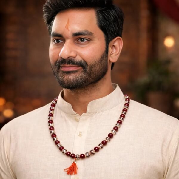 Red & Clear Crystal Beads Mala | Stylish Meditation & Healing Beads Necklace