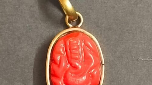 High Quality Panchdhatu Munga Ganesh Locket(पंचधातु मूंगा गणेश लॉकेट)