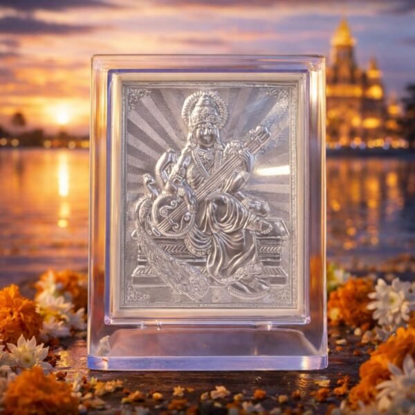 Elegant Silver Saraswati Maa Photo Frame with Stand – Shubh Vidya aur Samriddhi ka Prateek