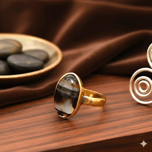 High Quality Certified Sulemani Hakik Stone Ring In Brass With Certificate(सुलेमानी हकीक स्टोन रिंग) | Size- Adjustable | Weight- 5.74 gram